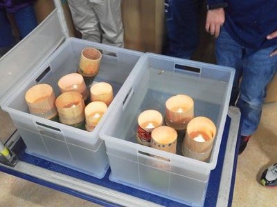 完成後水に浮かべてロウソクを入れて着火