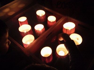 いつしか陽が落ちた 水に浮いたロウソクのあかりが揺れる