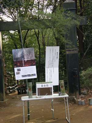 竹林整備支援の募金箱(本丸広場門)