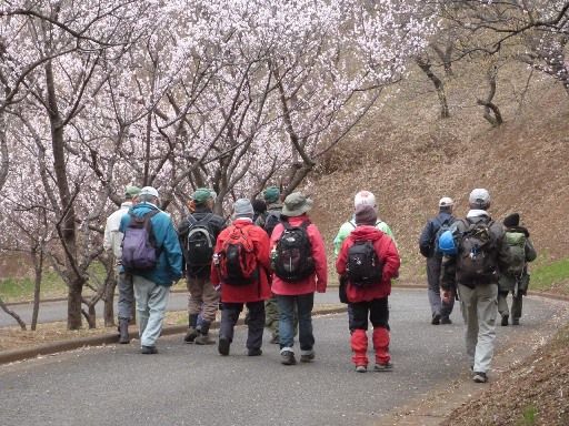 青空だったらそれはそれは、一見の価値ありだが、残念ながら曇り空だった。間伐作業後のリュックを背負う姿が皆さんお似合い。