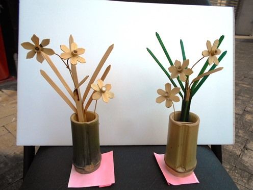 飾り花として、 竹でスイセンの花 (花瓶付き)