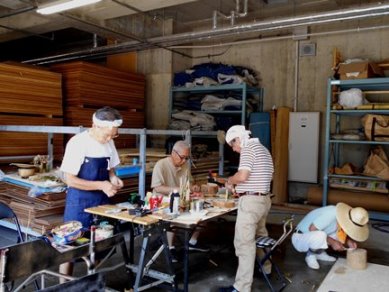2.冷房なしの倉庫で大汗かきかき竹細工研究