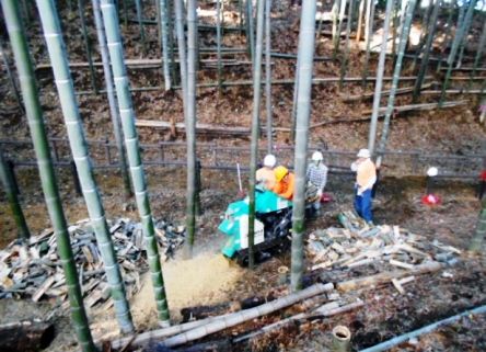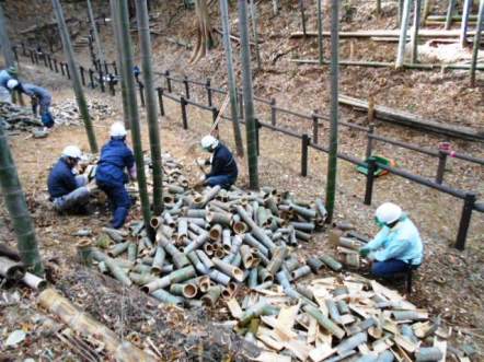 竹灯籠割りとチップ化