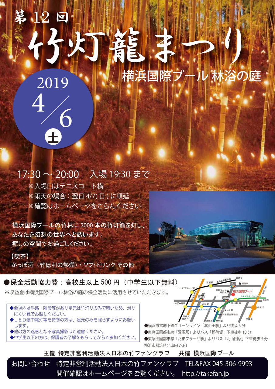 4月6日(土) 第12回竹灯籠まつり 横浜国際プール林浴の庭