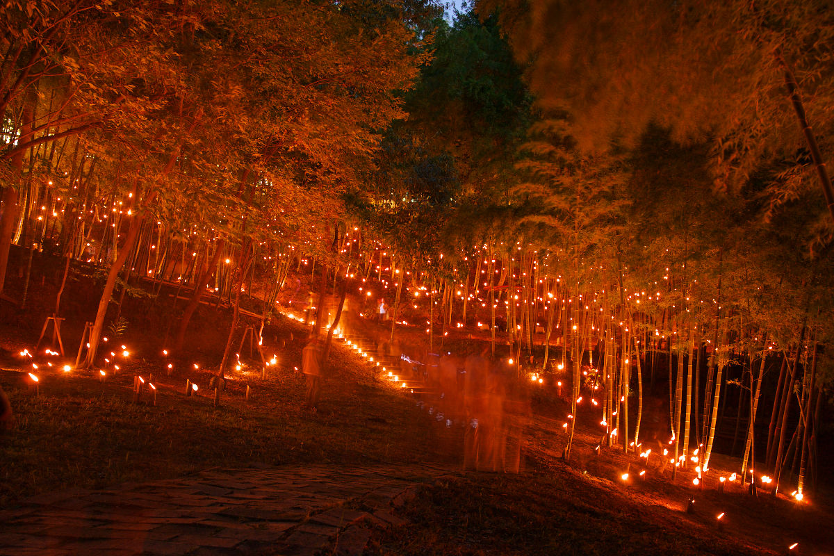 港北ニュータウン 竹林が竹灯籠の灯にひかります