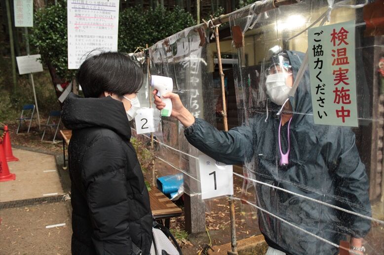 11月7日の「第17回小机城址市民の森竹灯籠まつり」では、お客様にLINEコロナお知らせシステムQRコード読取り記録をお願いし、飛沫防止シートを設置した5ブースで検温を実施しました。