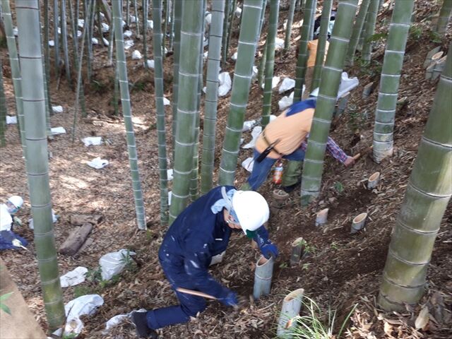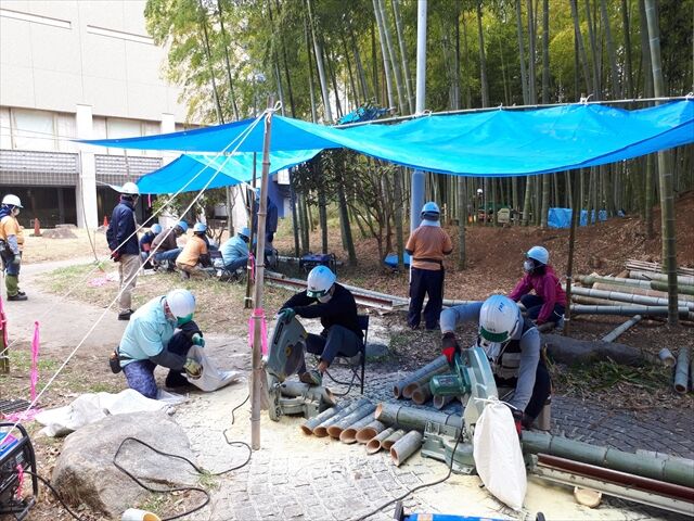 総勢15名が2カ所 竹灯籠つくりに着手しました