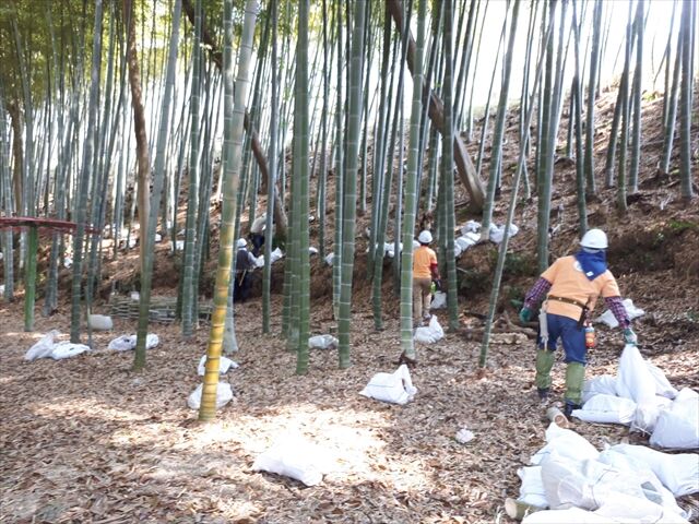 竹林の中で設置がつづく