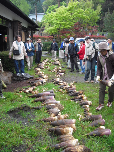 それでも昼食前には背後の竹林が見えるようになって、午後はみんなの動きが軽やかになりました。昼食後一班がタケノコ堀りをして、全員の持ち帰り分を用意。